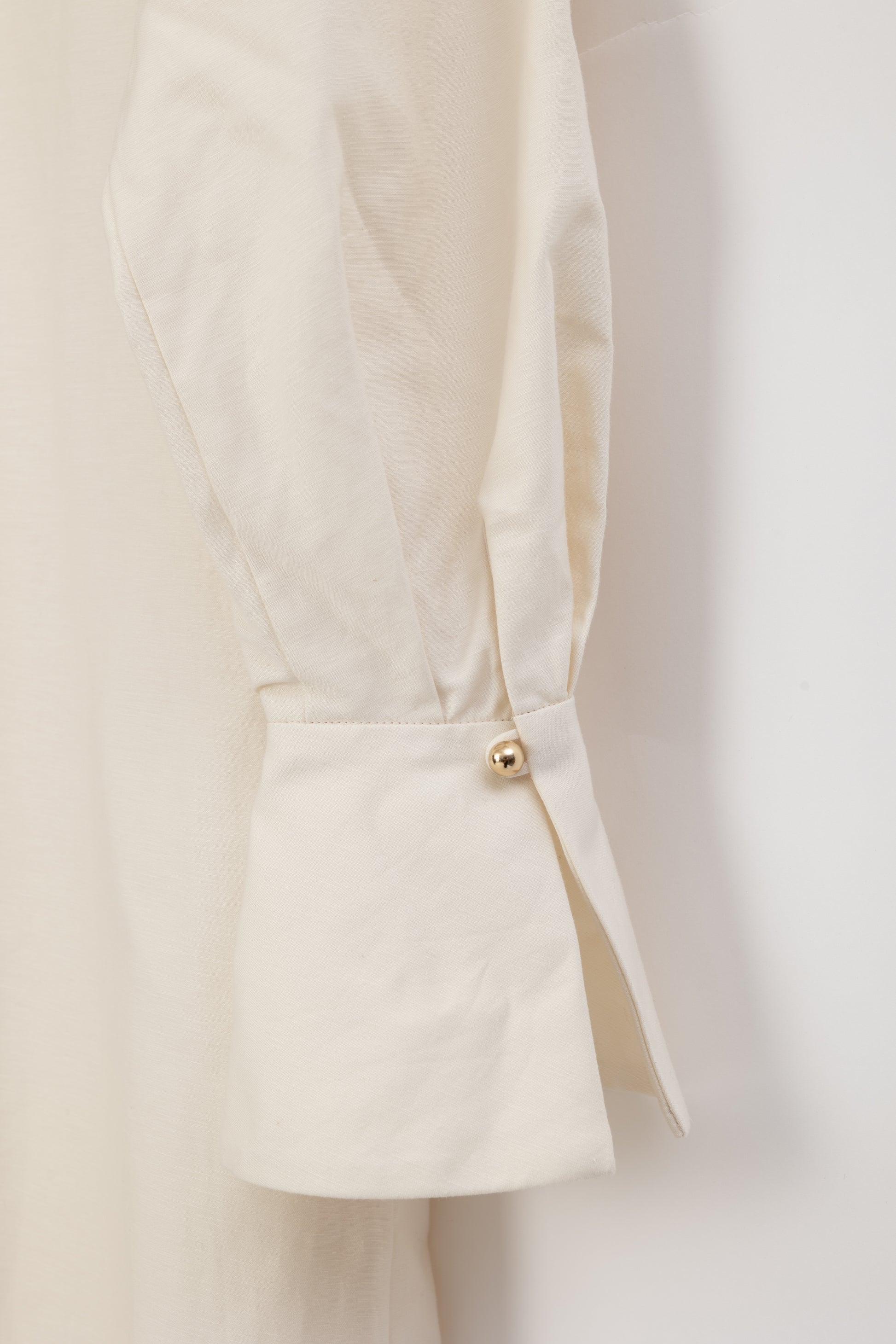 細く上品な糸と、ほどよくカジュアルなコットンリネンを組み合わせて織り上げた生地は、自然な光沢と揺らぎのような表情を持ち、素肌に触れたときの軽やかさも魅力です。