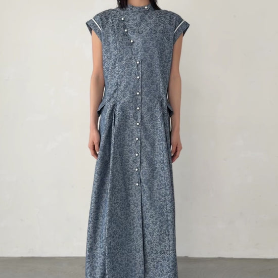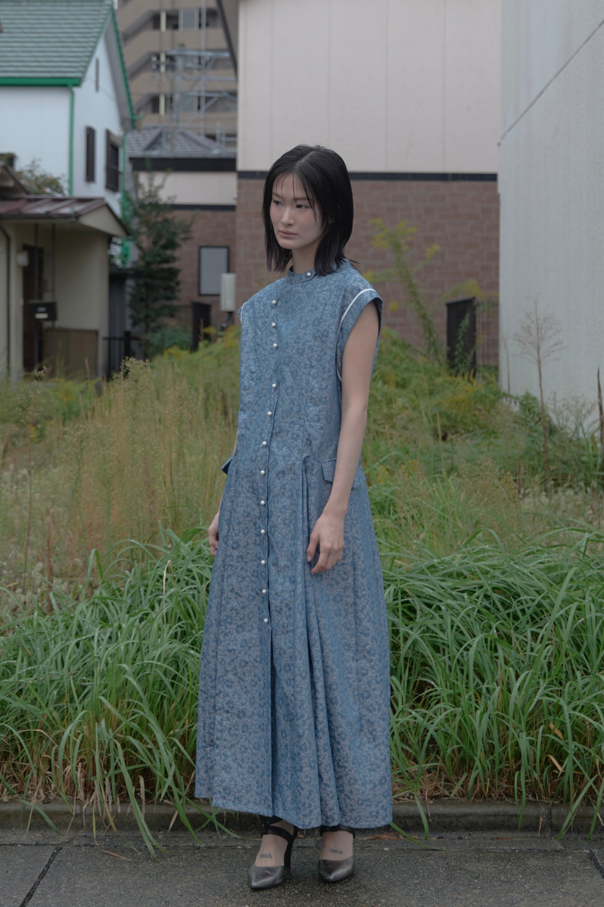 繊細なジャカードに刻まれた二色の染め分けが、静かな華やぎを帯びたドレスへと仕上げています。
