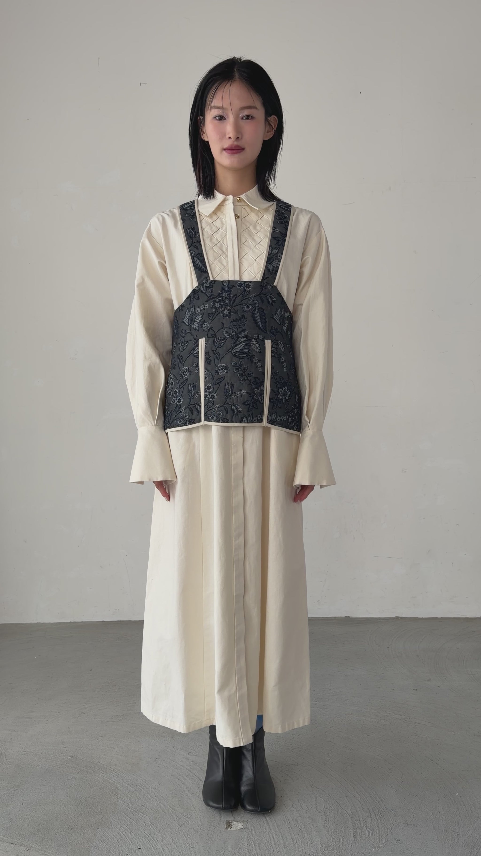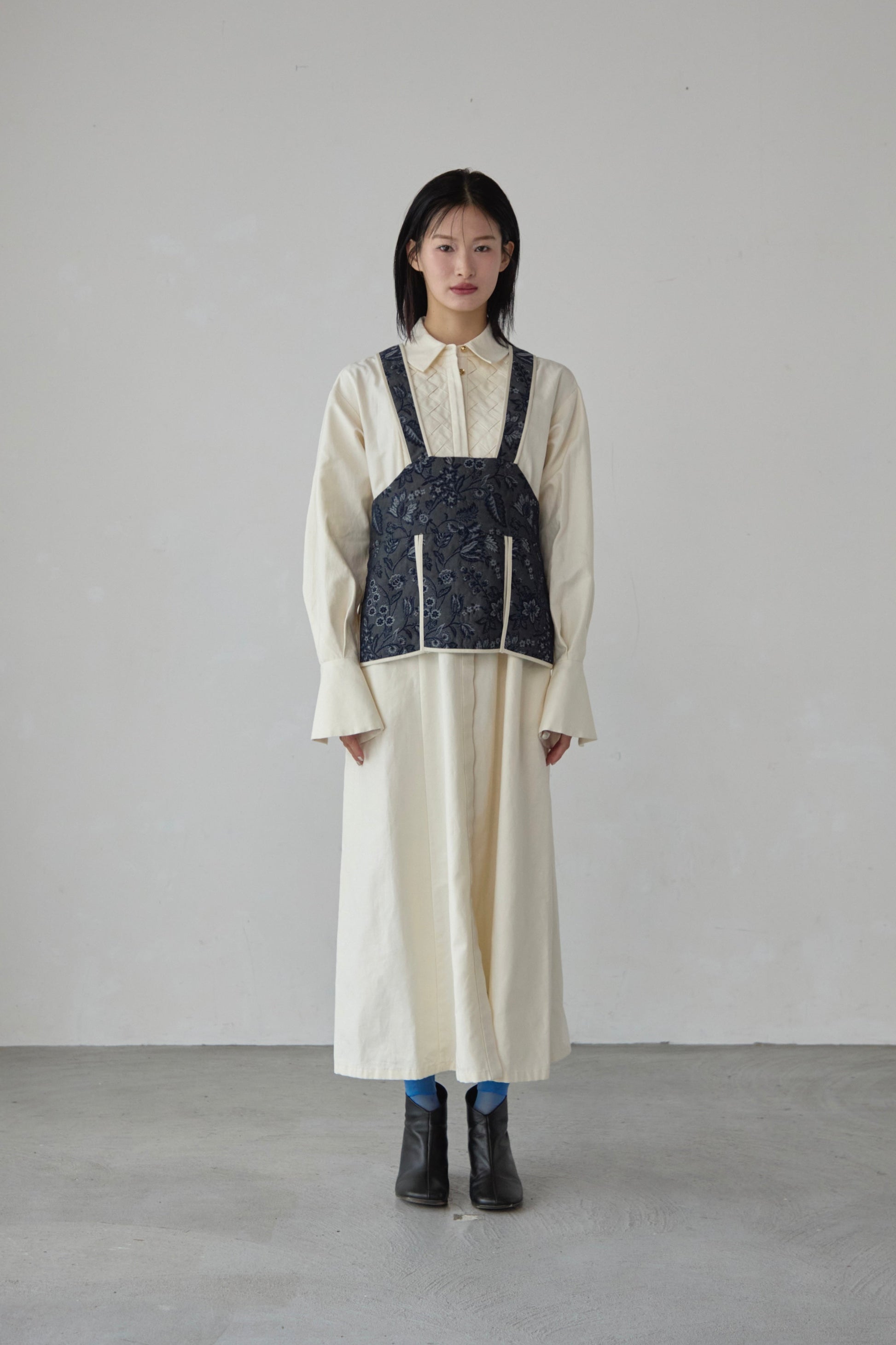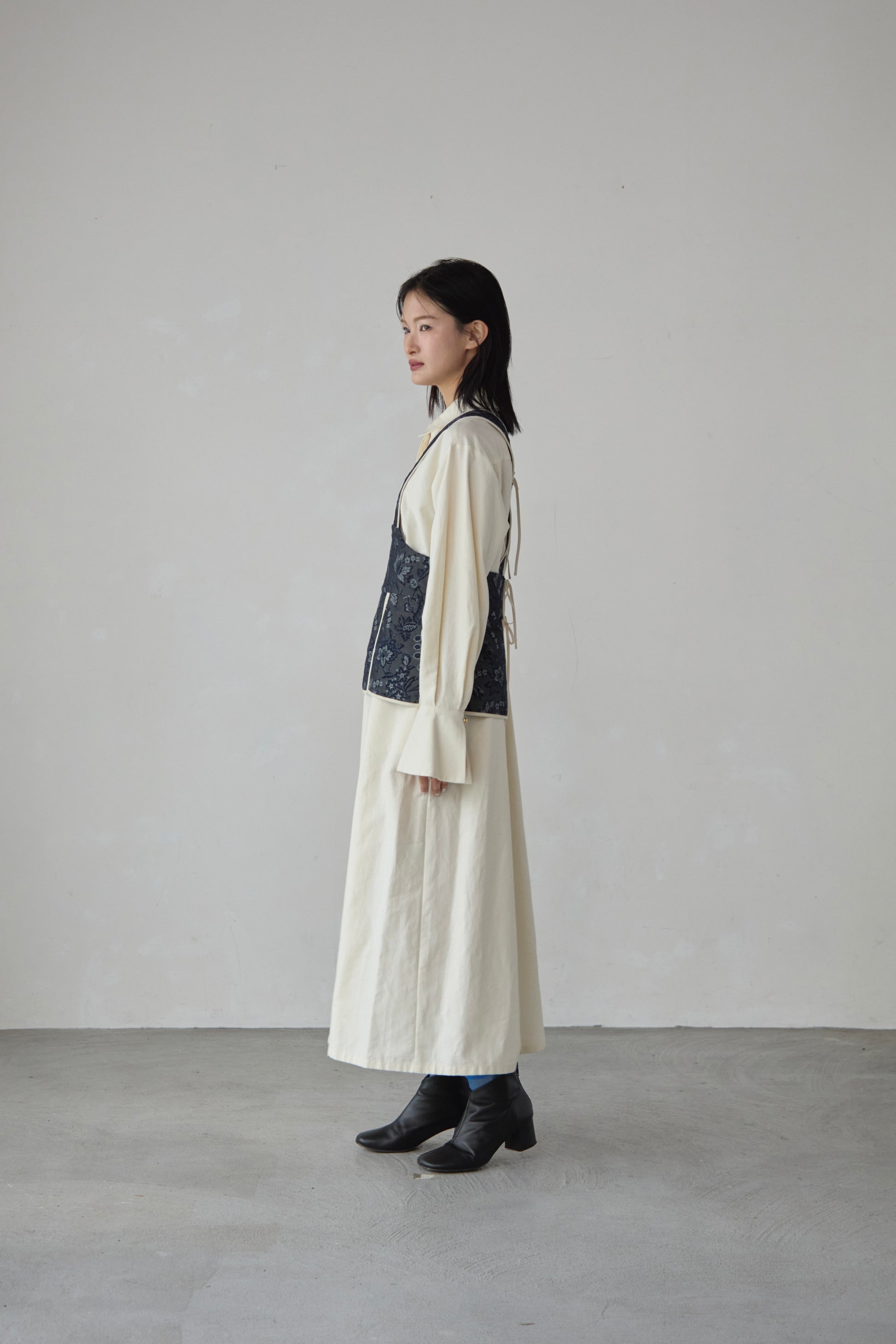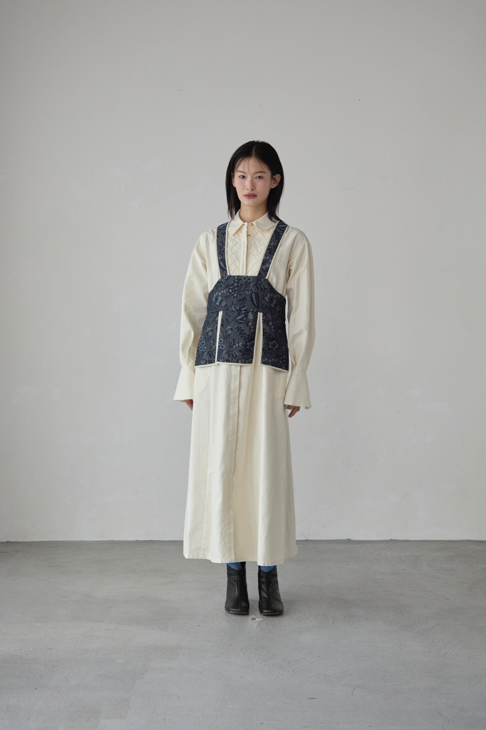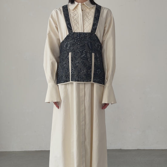 愛知県一宮市で丁寧に織り上げた、贅沢な日本製ジャカード生地を使用したコルセットベスト。