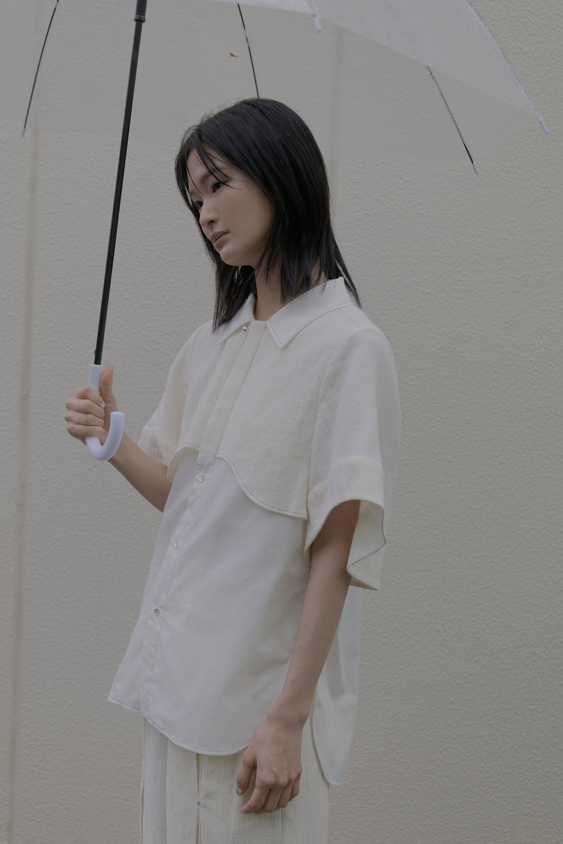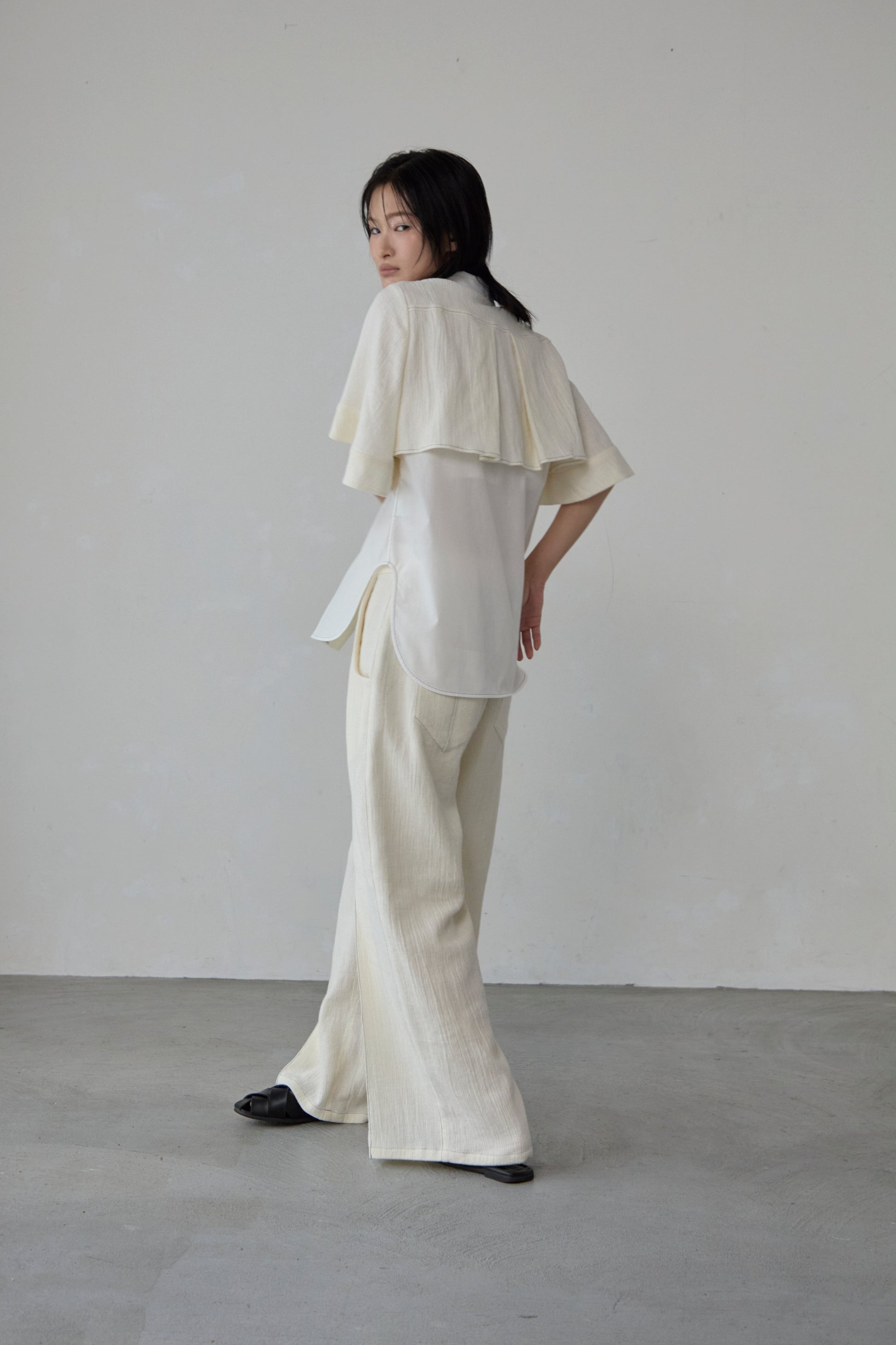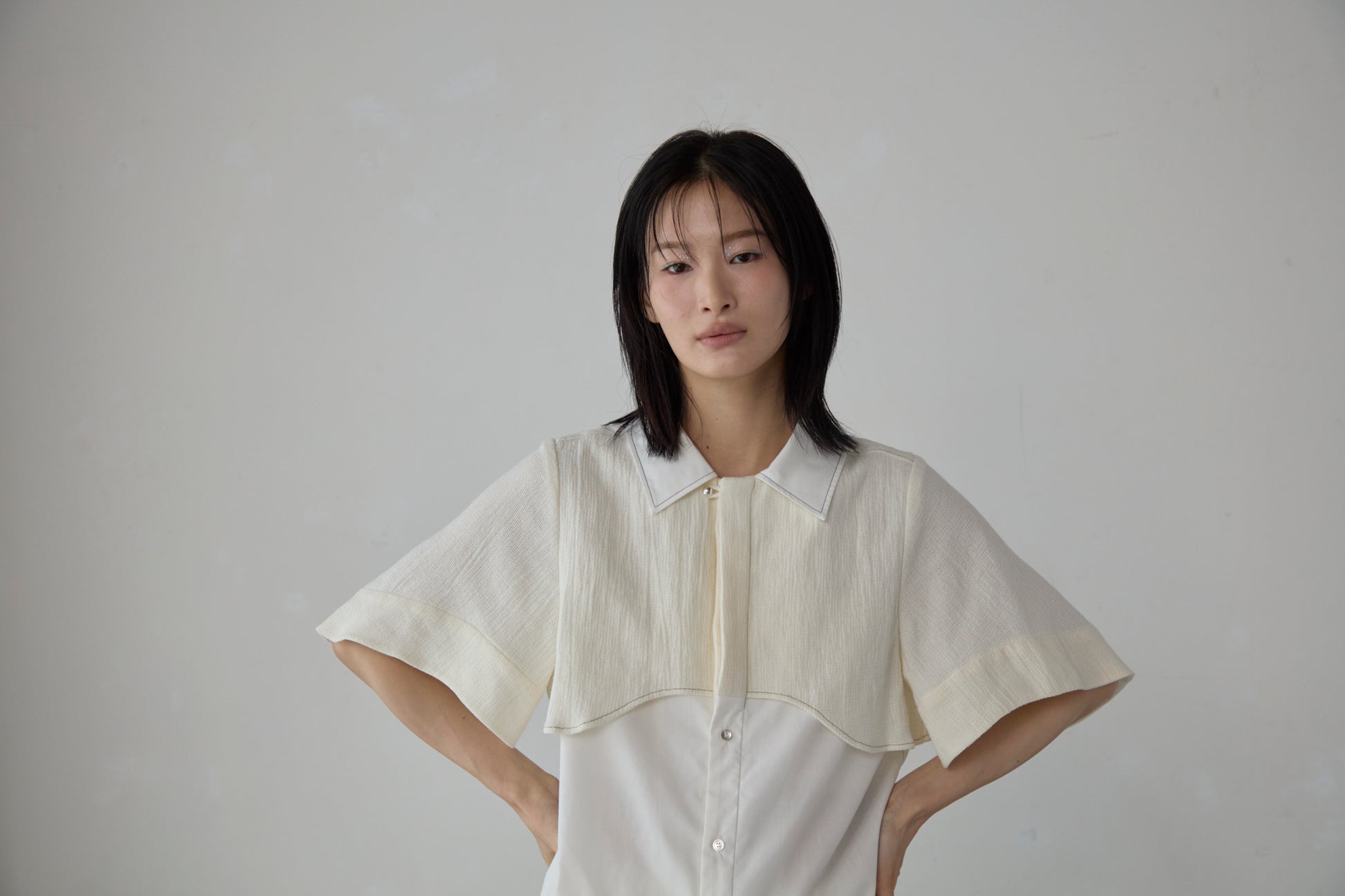異素材の重なりが静かな存在感を放つフレアスリーブシャツ。