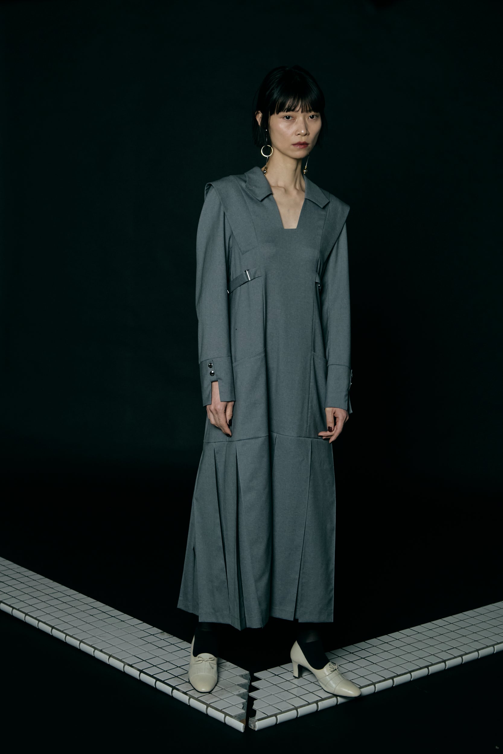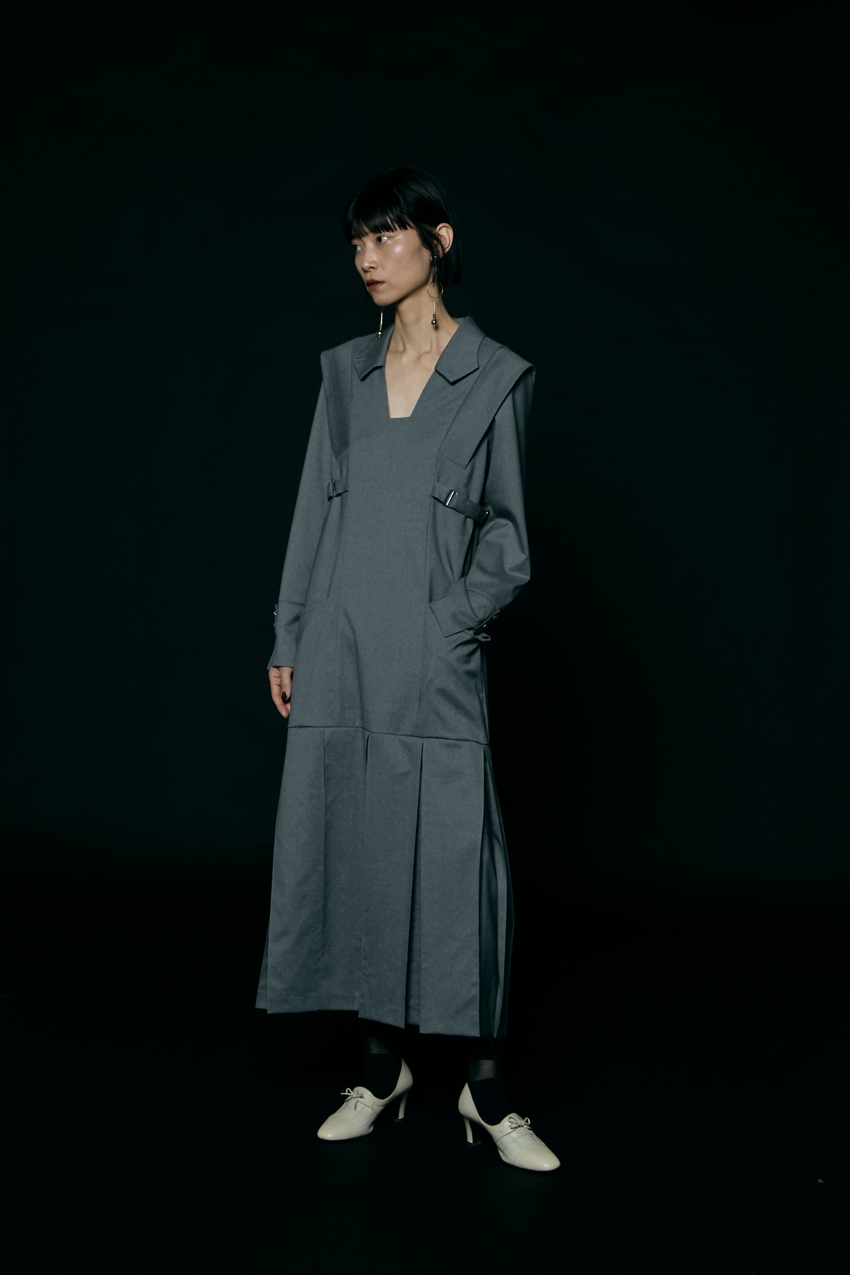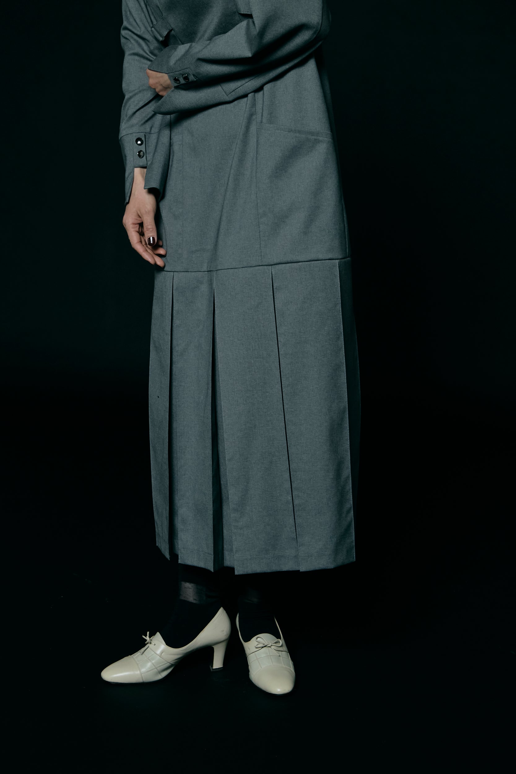 Pleated skirt dress / Gray