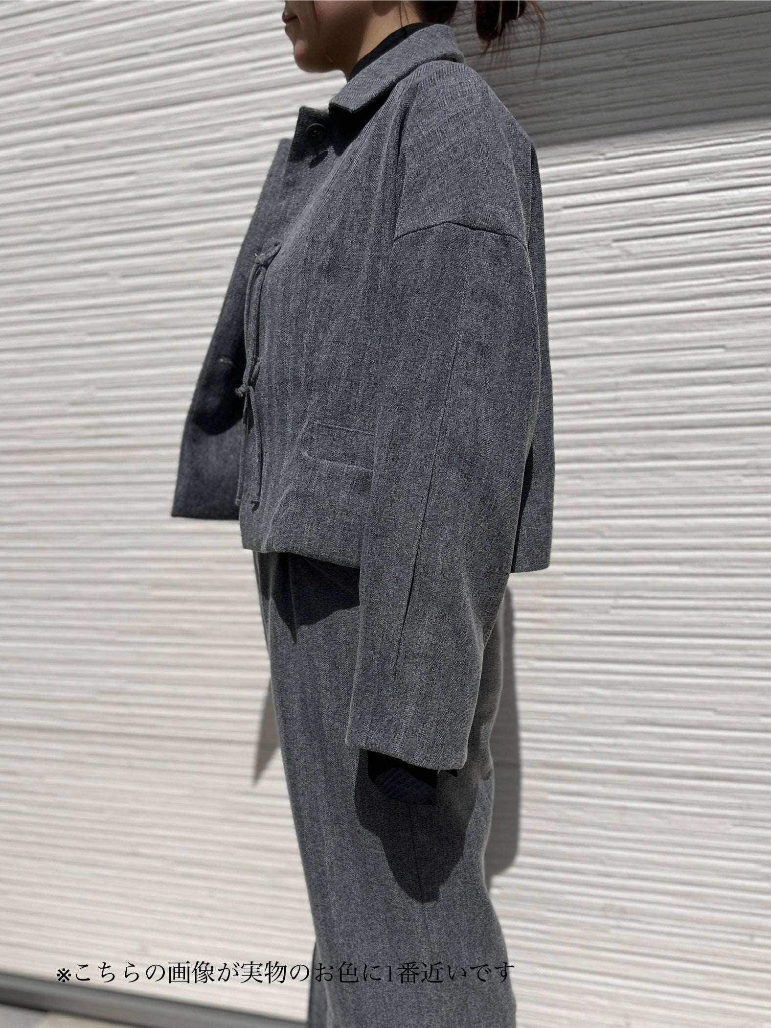 繊細なメランジの表情が織りなす、クラシカルでありながらモダンな佇まいのショートジャケット。