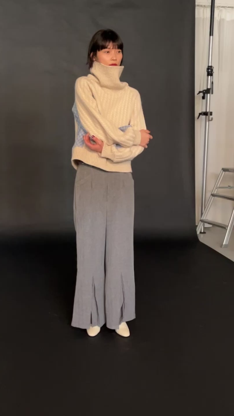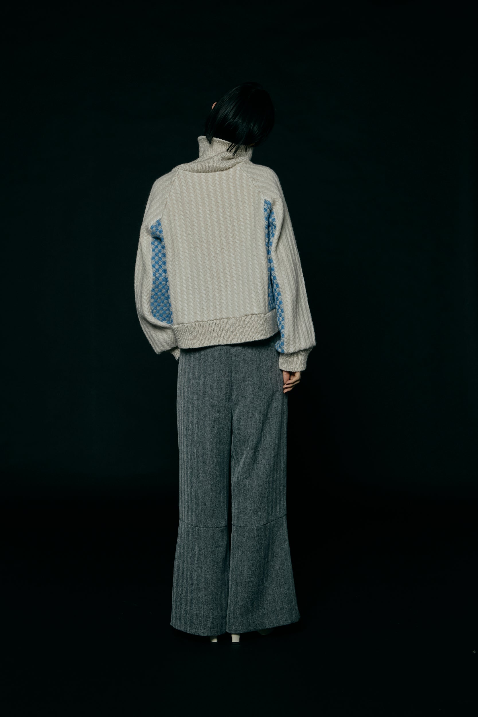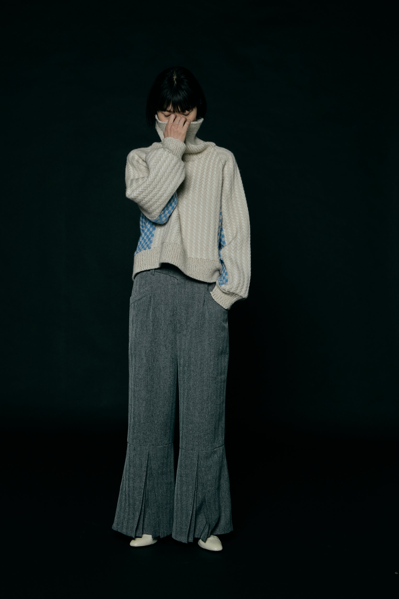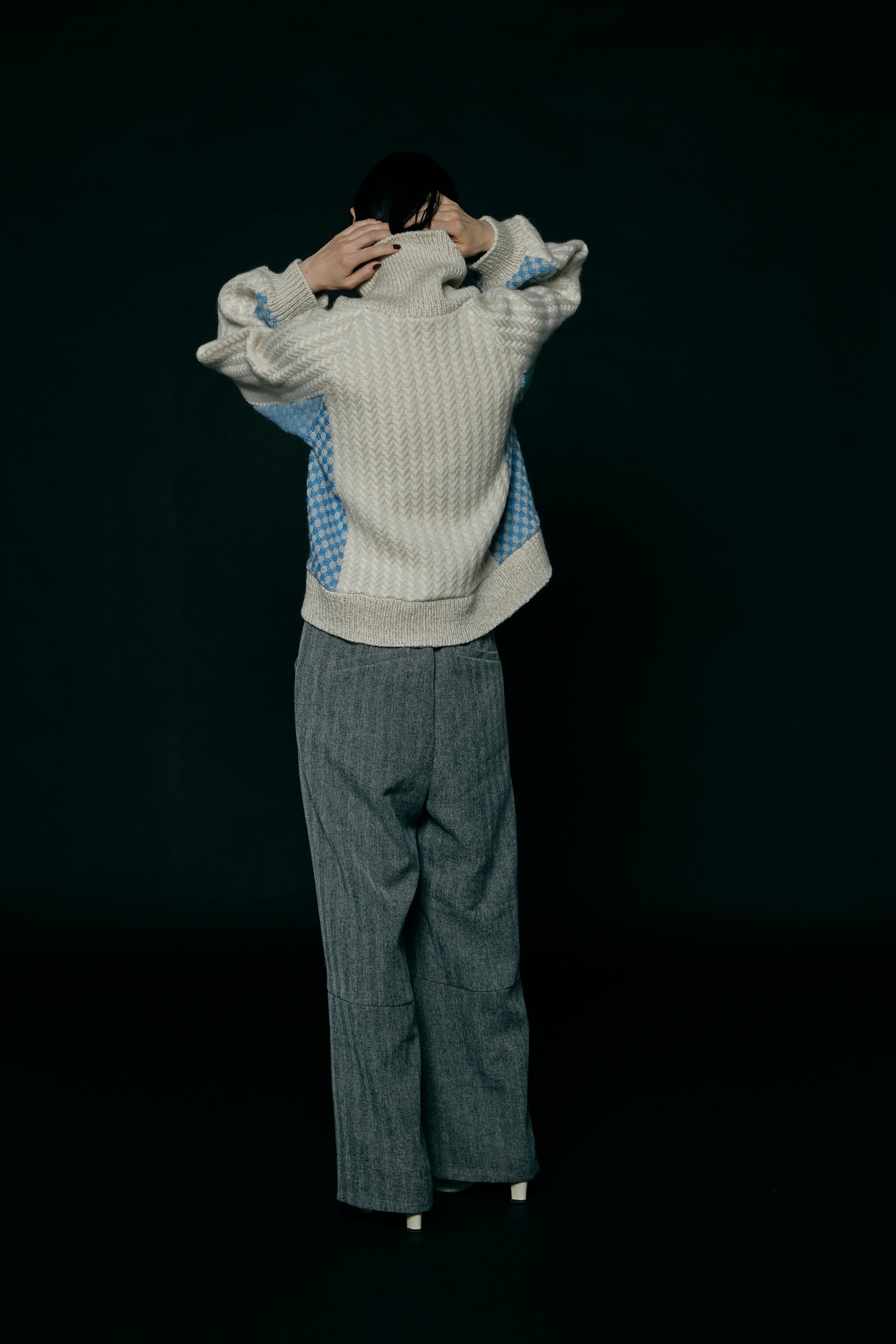 視覚と触感にささやかな裏切りを仕掛けるこのプルオーバーは、伝統と実験、手仕事と機械美が溶け合う、今季を象徴する一着です。