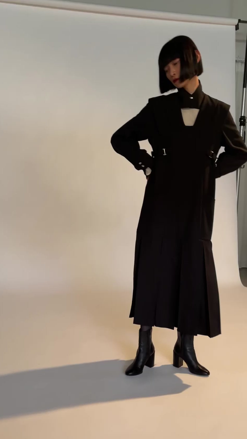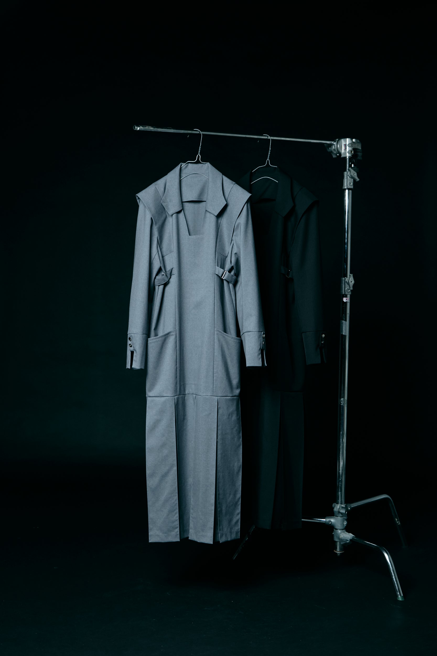 洗練されたシルエットと機能性を兼ね備えたドレス。