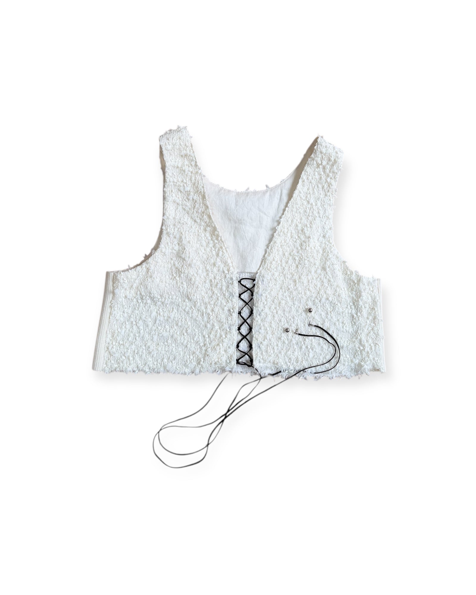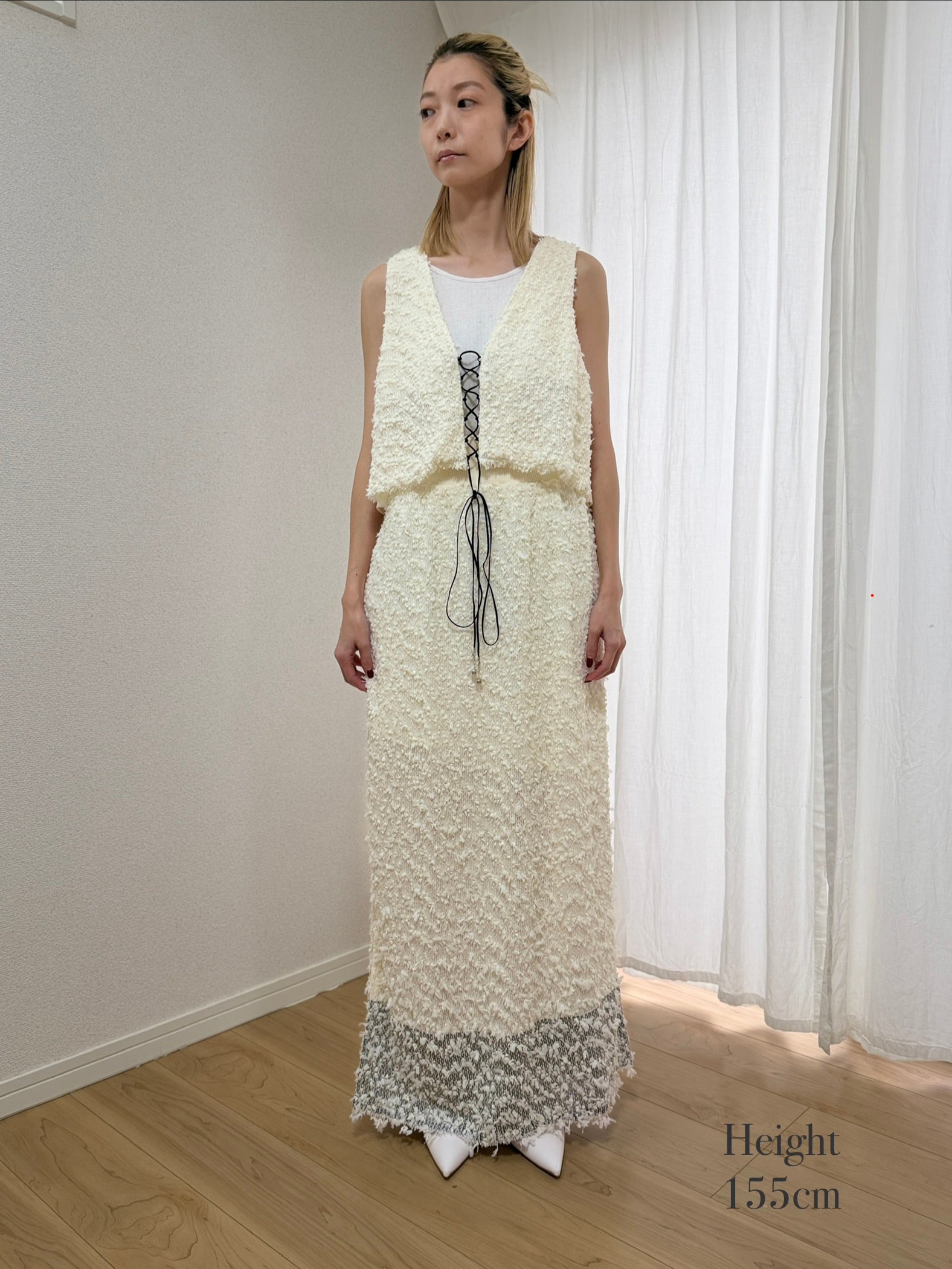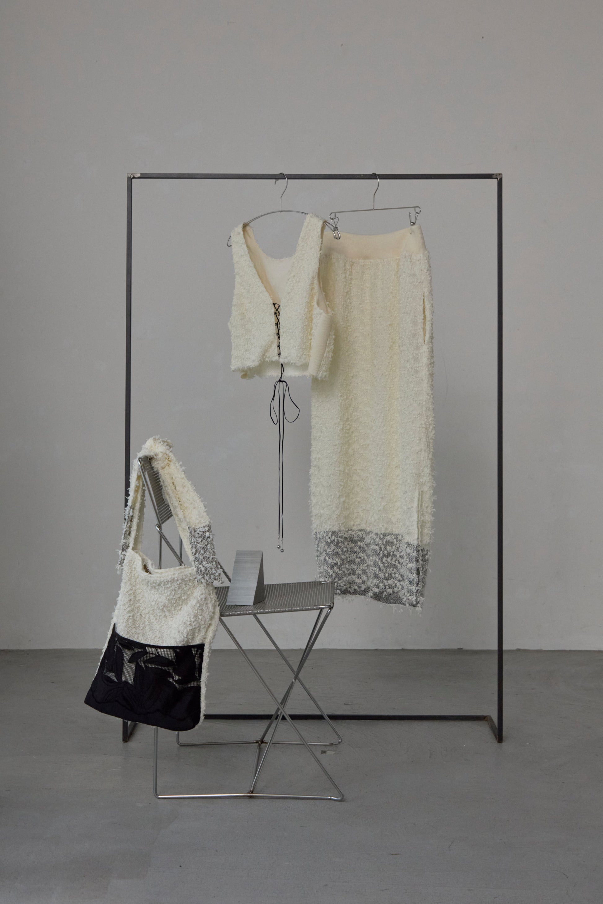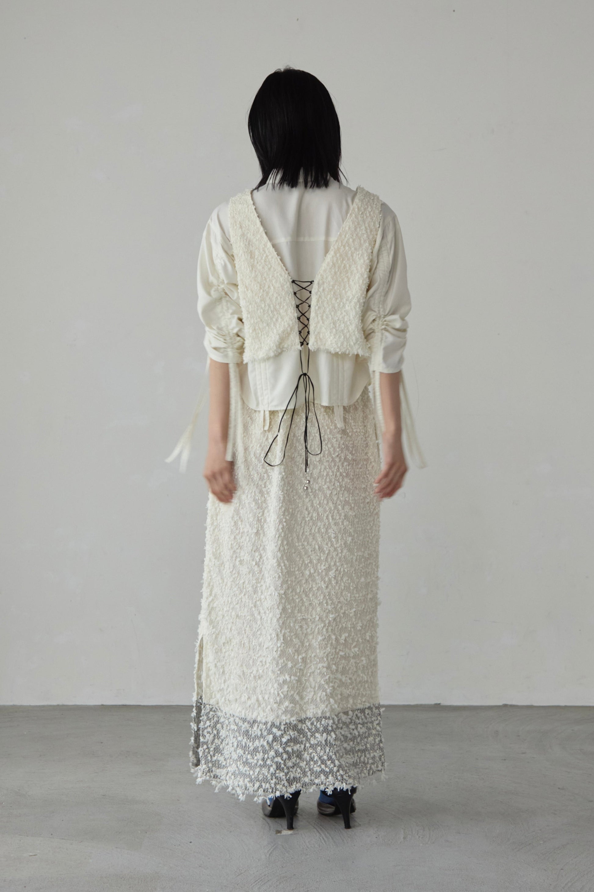 裏地なし / 前後着用可能 / レースアップ開き / ポケットなし